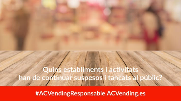 Donat que molts establiments donen servei de Vending, a continuació, recordem els equipaments i activitats que han de romandre suspesos i tancats al públic: